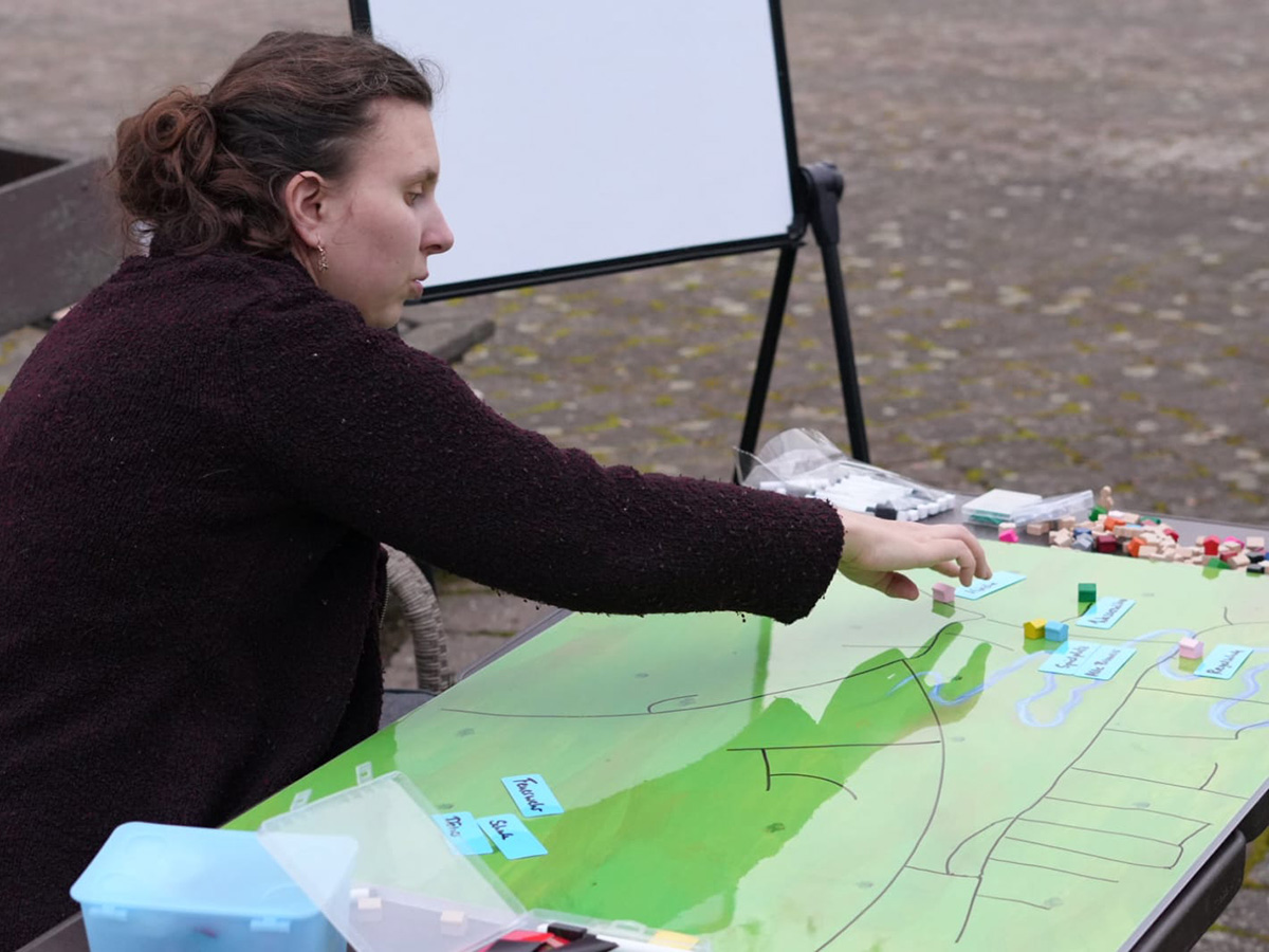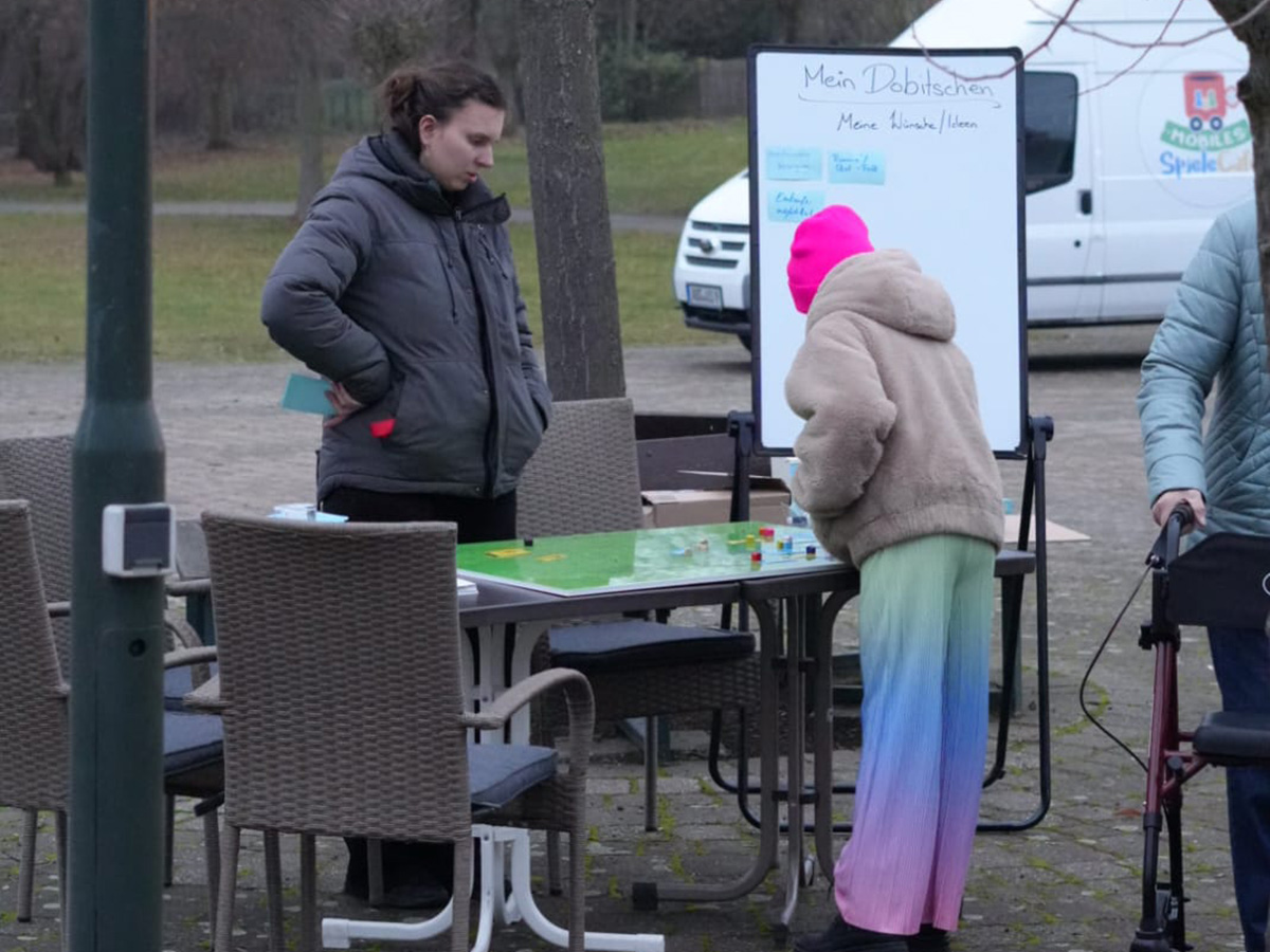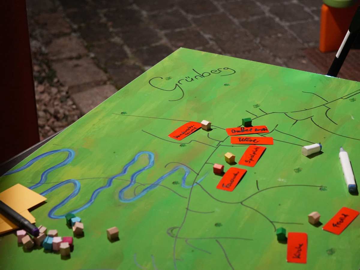 Das soll sich nun ändern. Und zwar mit einem Dreisprung: Im ersten Schritt lädt Sarah-Ann gemeinsam mit einem lokalen Akteur, beispielsweise der Freiwilligen Feuerwehr, die Menschen in zunächst fünf Dörfern rund um Altenburg ans Spielbrett. Die Aufgabe: das Dorf nachbauen, also Straßenverläufe legen und wichtige Gebäude wie Kita oder Marktplatz aufstellen. „Dabei kommen die Menschen ins Gespräch und beginnen, sich über ihr Dorf auszutauschen: Was fehlt? Was ist schon da? Was kann man besser machen? Es geht um ihre Wünsche und Visionen für die Kommune.“