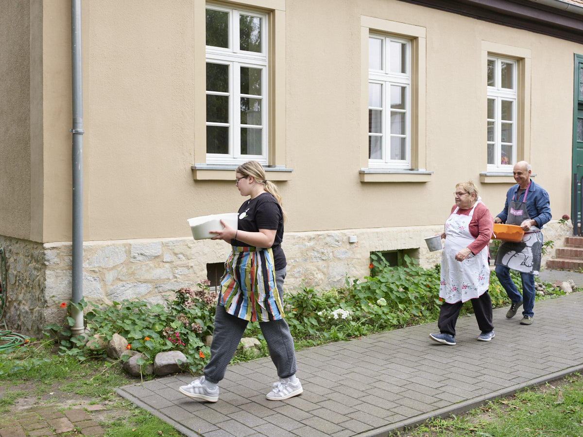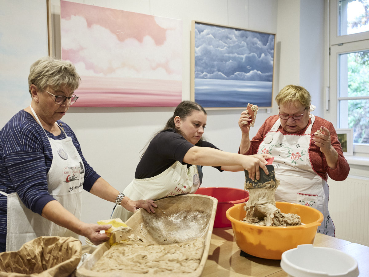 Es genüge nicht, ein Backhaus zu renovieren, man müsse es auch betreiben, sagt die Poucher Pastorin. Sie will eine feste Backgruppe aufbauen, die handwerklich und pädagogisch so geschult ist, dass sie sowohl Kindern als auch Erwachsenen Angebote machen kann. Lampadius-Gaube geht es dabei nicht nur um das eigene Dorf: „Wir wollen nicht für uns bleiben, sondern den Blick auf andere Backinitiativen weiten und mit ihnen landauf und landab eine Plattform entwickeln, auf der wir uns vernetzen können.“ Ganz regelmäßig soll künftig in Pouch gebacken werden, es sollen Wochenend-Seminare und Verkostungen stattfinden, am liebsten flankiert von kulturellen Veranstaltungen. Bettina Lampadius-Gaube stellt sich vor, dass die Backtage – wenn also der Ofen drei Tage lang eingeheizt wurde und seine über 300 Grad erreicht hat – zu echten Highlights werden. Alle sollen einfach vorbeikommen, mitkneten und dabei über Politik und Kultur, über Kindererziehung und Gesundheit ins Gespräch kommen.