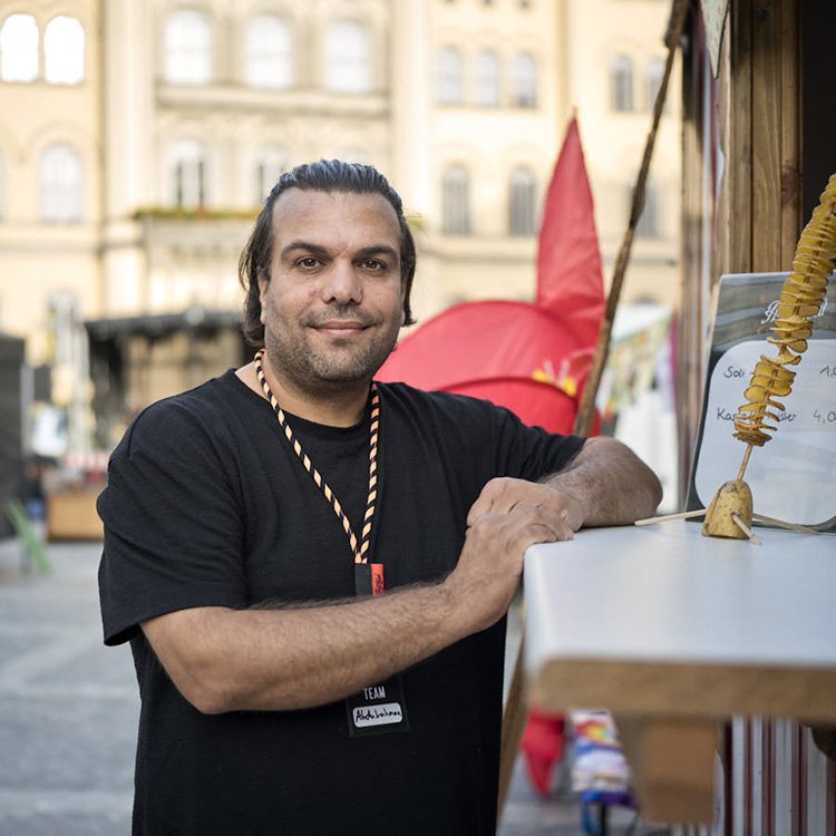 Als Neulandgewinner will er das noch einmal intensivieren. Das Café an mehr Tagen öffnen, den Umsonstladen gemeinsam mit anderen Ehrenamtlichen übernehmen. Er plant Feste und Veranstaltungen, zum Beispiel zum islamischen Zuckerfest oder dem Neujahrsfest Newroz. Er will die kulinarischen Spezialitäten seiner Heimat teilen, denkt über einen internationalen, nicht kommerziellen Partyservice nach. „Inklusion mit Genuss“, so fasst er die unterschiedlichen Bausteine seines Projekts zusammen. Denn er weiß: Über das Thema Essen gelingt Austausch viel leichter.